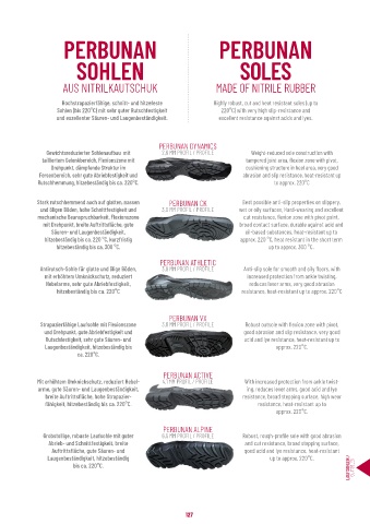 tischem Polyurethan (TPU) mit hoher Abriebfes- rethane (TPU) with high abrasionresistance, good slip Hochstrapazierfähige, schnitt- und hitzefeste Highly robust, cut and heat resistant soles (up to