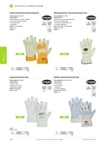 310 Bitte die Bestell-Nr. um den Größencode (...) ergänzen. Alle Preise in € ohne MwSt.