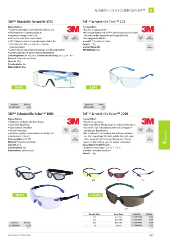 • Mit integriertem Augenbrauenschutz • Brillenbügel können mit 3M™-Gehörschutzstöpseln mit Band