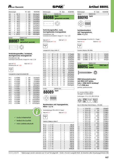 M 6 x 25 SW10 S 100 77,00 gal Zn M 12 x 40 x 15 S 50 210,00 gal Zn SPAX Universalschrauben