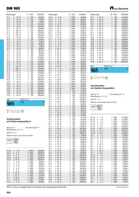 DIN 965 Å wird ersetzt durch ISO 7046 M 6 x 8 -H S 200 52,00 A 4 M 2 x 3 -Z S 1000 22,80 A 2