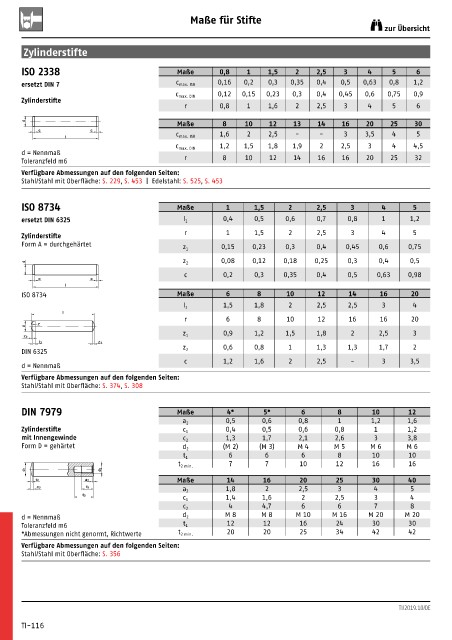 Stahl/Stahl mit Oberfläche: S. 229, S. 453 | Edelstahl: S. 525, S. 453