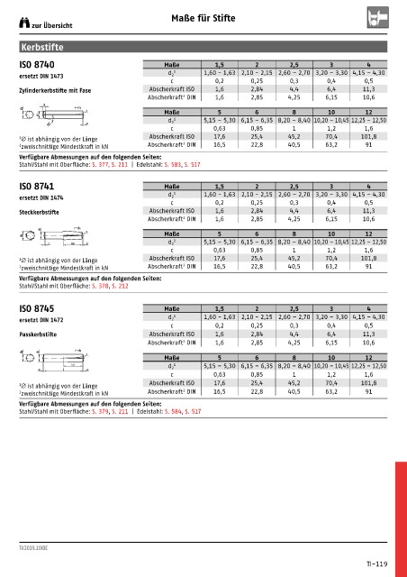Steckkerbstifte Abscherkraft ISO 1,6 2,84 4,4 6,4 11,3