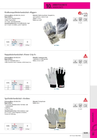 Zulassung/Norm: EN 388:2016, EN 420 Material: Rindkernspaltleder, Doppelnähte,
