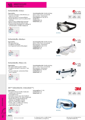 • Panoramascheiben mit sehr gutem Blickfeld Zulassung/Norm: EN 166, EN 170
