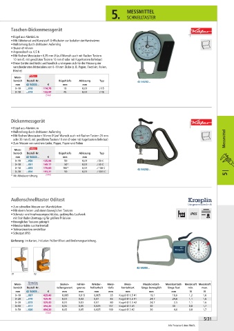 oder 30 mm Ø, mit gewölbten Tastern 10 mm Ø oder mit Kugeltastern lieferbar) Messmittel