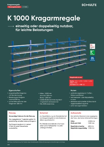 Die Kragarmregale sind in jedem Pro Ständer sind deshalb 2 Schraub- Breite pro Feld: 1.250 mm