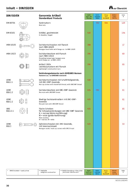 * DIN/ISO identisch = austauschbar ** DIN/ISO/EN *** DIN/ISO-Umstellung → Rote Seiten Stahl/ Nicht- Ms Cu Befesti- Maße