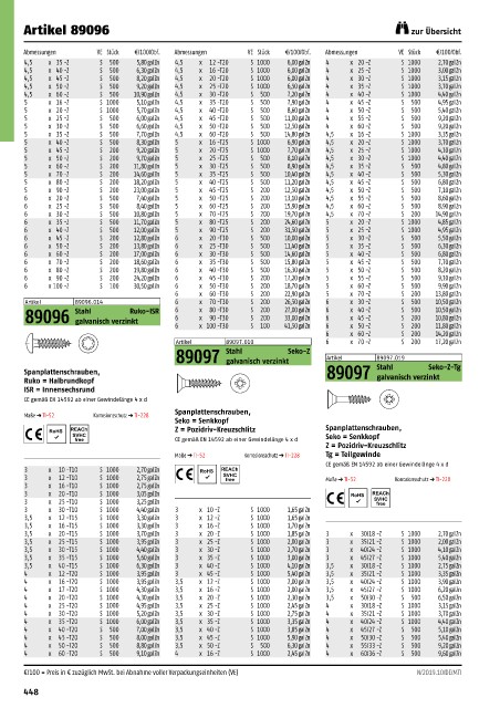 89096 galvanisch verzinkt 6 x 90 -T30 S 200 33,00 gal Zn 6 x 45 -Z S 200 10,80 gal Zn