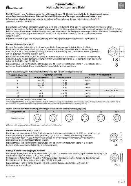 Die Schlüsselnummer gibt eine direkte Zuordnung zu den Festigkeitsklassen von Schrauben an ( → Tabelle 3).