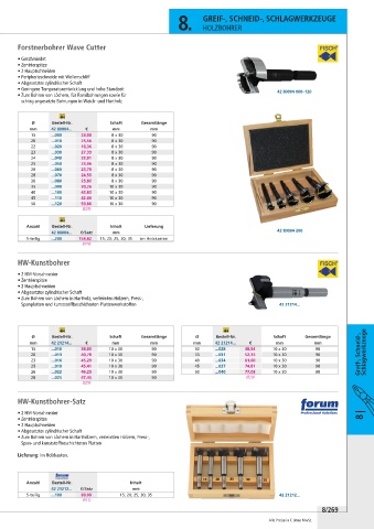 • Zum Bohren von Löchern in Harthölzern, verleimten Hölzern, Press-,
