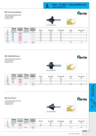 Ø Bestell-Nr. Fasefräser Bestell-Nr. kugellager Winkel Nutzlänge Gesamtlänge Breite Bohrungs-Ø