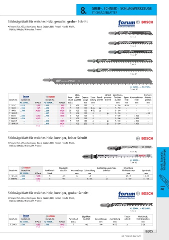Bosch-Nr. Bestell-Nr. Packinhalt qualität Gesamtlänge Zahnteilung Schnitte Tischlerplatten Sperrholz