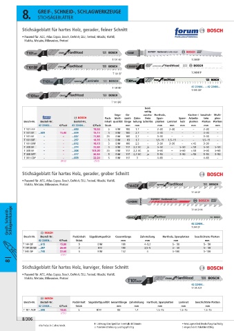Bosch-Nr. Bestell-Nr. Packinhalt Sägeblattqualität Gesamtlänge Zahnteilung Hartholz, Spanplatten Laminat beschichtete Platten