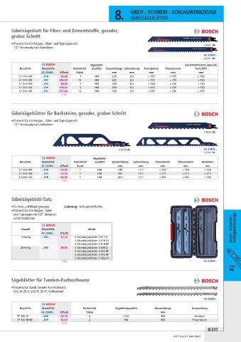 Bosch-Nr. Bestell-Nr. Packinhalt qualität Gesamtlänge Zahnteilung Porenbeton Fiberzement Backstein