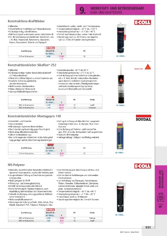 • Nicht geeignet für PE/PP • zur Verklebung von Türzargen, Fensterbänken, Betriebsbedarf