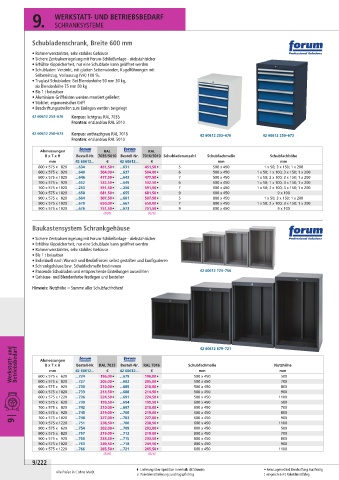 Werkstatt- und Betriebsbedarf Abmessungen 42 60612... RAL 7035 42 60612... RAL 7016 Schubfachmaße Nutzhöhe