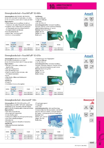 • Schützt länger vor einer größeren Anzahl von • AQL (EN 374): 1,5