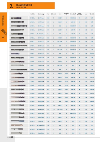 2 | 42 15352... Schaftfräser 2–20 3 DIN 6527 N VHM K10/20 HB 2/26 TiAlN
