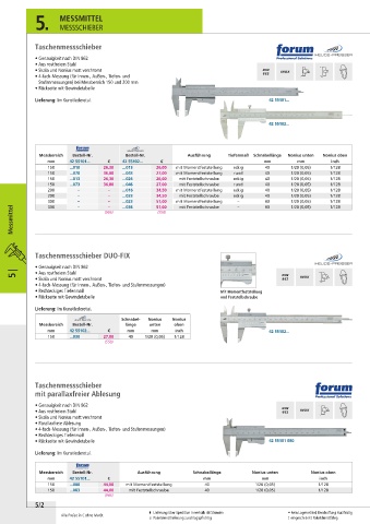 Messbereich Bestell-Nr. Ausführung Schnabellänge Nonius unten Nonius oben