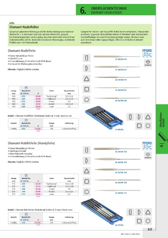 Inhalt: 5 Diamant-Nadelfeilen flachstumpf, halbrund, 3-kant, 4-kant, rund.