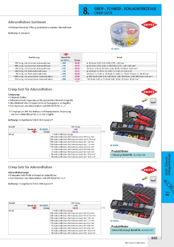 Crimp-Satz für Aderendhülsen Greif-, Schneid-, Schlagwerkzeuge