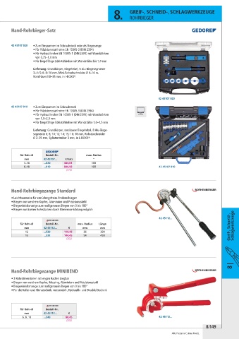 für Rohr-Ø Bestell-Nr. max. Radius Länge Schlagwerkzeuge