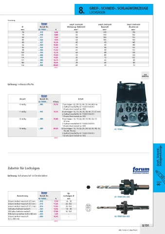 12-teilig ...106 76,80 9 Lochsägen 16; 19; 22; 29; 35; 44; 52; 57;