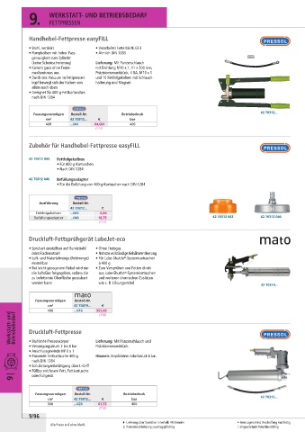 • Passende Fettkartusche 400 g Hinweis: Empfohlener Arbeitsdruck 6 bar.