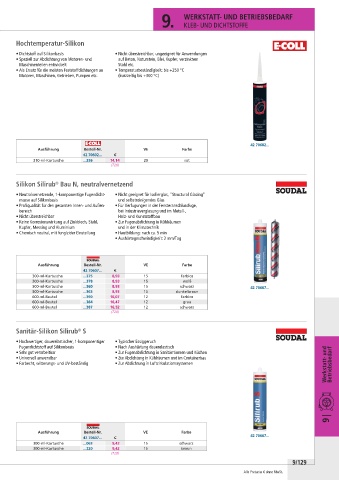 • Keine Korrosionswirkung auf Zinkblech, Stahl, • Zur Fugenabdichtung in Kühlräumen