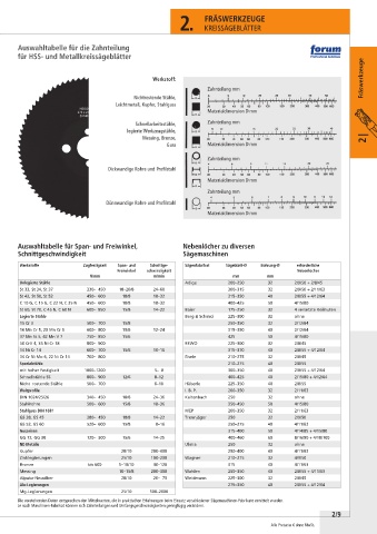 Werkstoffe Zugfestigkeit Span- und Schnitt ge- Sägenfabrikat Sägeblatt-Ø Bohrung-Ø erforderliche