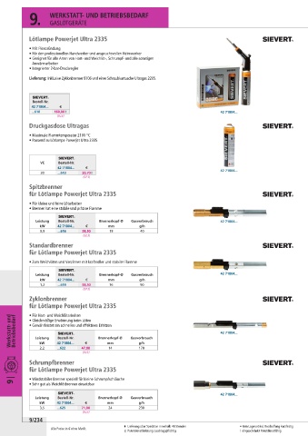 9 | • Windstabiler Brenner speziell für kleine Schrumpfschläuche