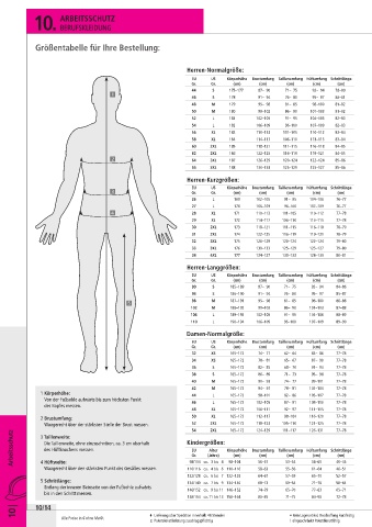 Arbeitsschutz Die Taillenweite, ohne einzuschnüren, ca. 3 cm oberhalb Kindergrößen: Körperhöhe Brustumfang Taillenumfang Hüftumfang Schrittlänge