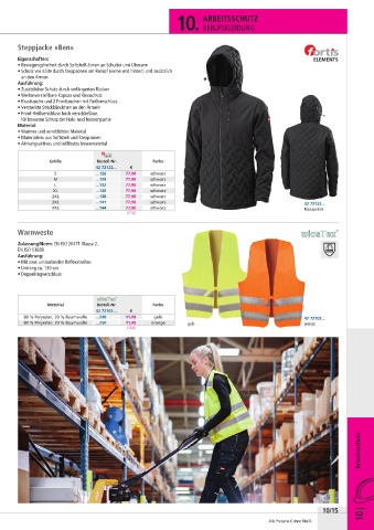 • Schutz vor Kälte durch Steppzonen am Rumpf (vorne und hinten) und zusätzlich