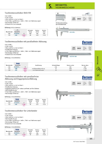 Messbereich Bestell-Nr. Ausführung Schnabellänge Nonius unten Nonius oben