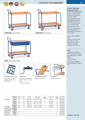 Bestell-Nr. Tragkraft Rad-Ø Ladefläche Außenmaße Anzahl Etagenhöhen Eigenge-