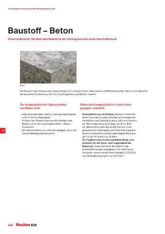 Der Baustoff oder Ankergrund. Unterschieden wird zwischen Beton, Mauerwerk und Plattenbaustoffen. Beton ist ein Baustoff,